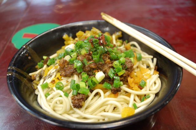 一回りして、良さそうな店を見つけて、名物の熱干麺(ルーガン)を頼む(7元なり)。